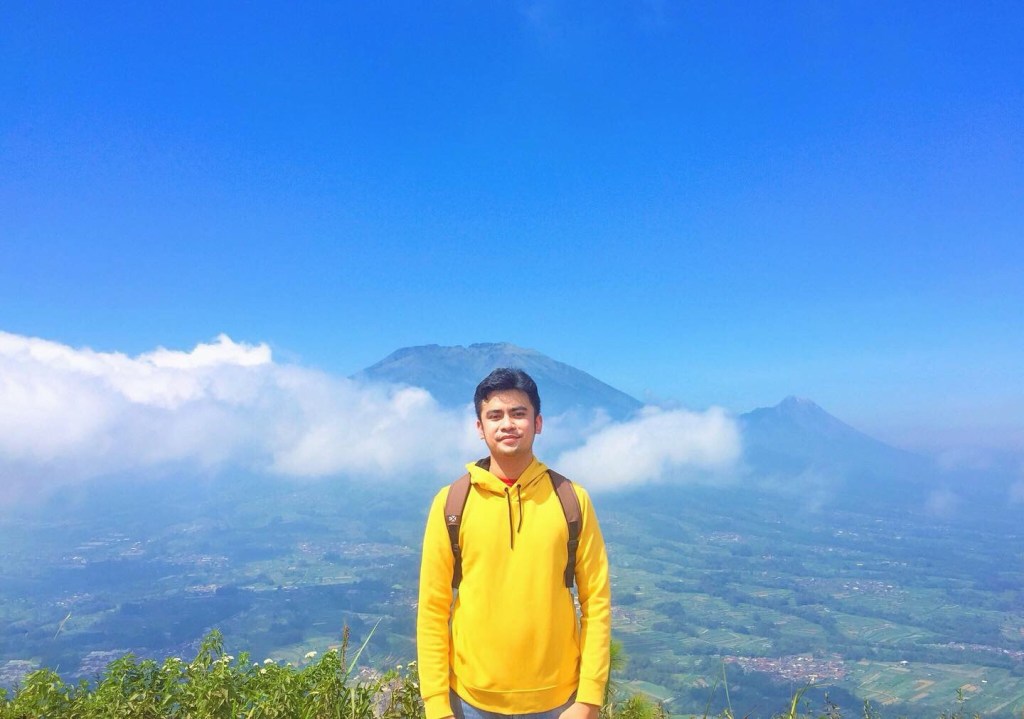 Salam dari saya, cowok ber-sweater kuning di atas gunung! 👋🏻
